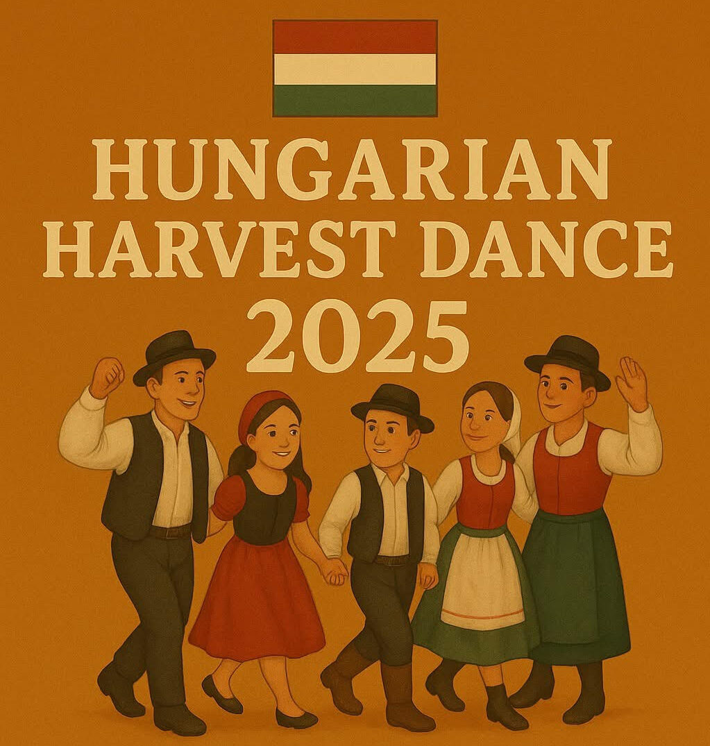 Doors open at 4pm for food orders, raffle items, and the Komenka Dancers performing. The Hungarian Harvest Dance celebration will begin at 7pm following the wine auction. Stay for the DJ until doors close at 10:00.